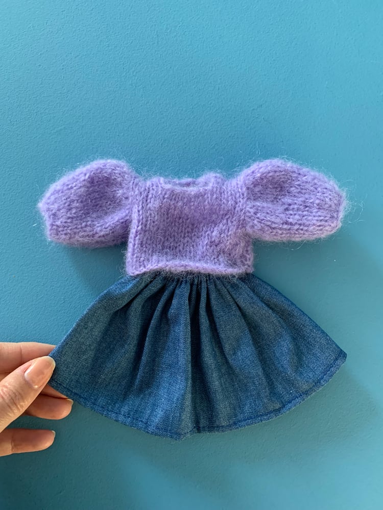 Tenue pour personnage lapin Aurélia mesurant 23 cm de hauteur.
